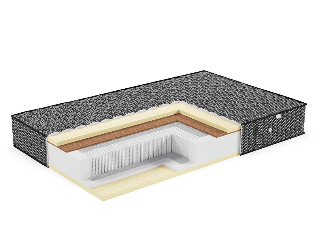 - Одна сторона матраса изготовлена из натурального латекса, кокосовой койры и полипропиленовой сетки, а другая — из полипропиленовой сетки и высокоэластичной пены FoamLux, дополненной натуральным латексом. Такой конструктив обеспечивает высокую прочность , отличную эластичность и исключительный уровень комфорта во время сна.